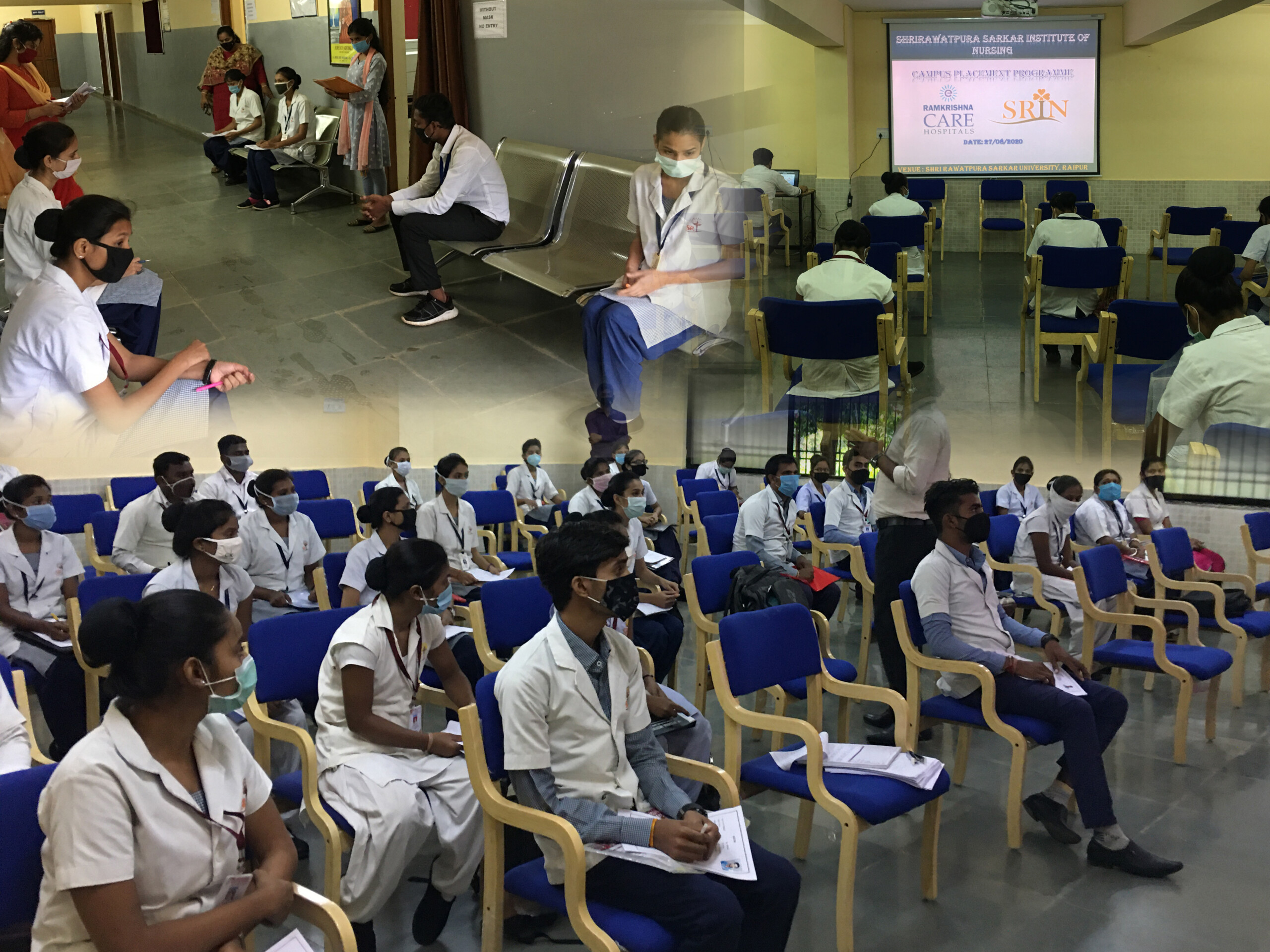 दिनांक 27/08/2020 को श्री रावतपुरा सरकार गु्रप आॅफ इंस्टीट्सशनस के अंतर्गत संचालित नर्सिंग काॅलेजोे के लिए केम्पस सिलेक्शन का आयोजन किया गया। इस आयोजन में बी.एसी. नर्सिंग एवं जी.एन.एम. के 62 छात्रों ने भाग लिया। भारत के प्रतिष्ठित हाॅस्पिटल रामकृष्ण केयर ने लिखित, प्रायोगिक परीक्षा एवं साक्षात्कार के माध्यम से 44 छात्रों को अपने हाॅस्पिटल में सेवा के लिए चयनित किया गया। चयन की प्रक्रिया रामकृष्ण केयर हाॅस्पिटल के वरिष्ठ मानव संसाधन प्रबंधक श्री शिवाकुमार पी. एवं उनकी टीम द्वारा पूर्ण की गई।