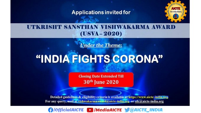All India Council for Technical Education (AICTE), Ministry of Human Resource Development, Govt. of India holding a competition “AICTE-Vishwakarma Awards-2020” for the students and institutes of AICTE approved institutions.