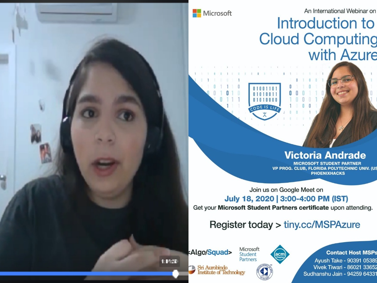 The event’s presenter was Victoria Andrade, a senior Microsoft Student Partner, and the vice-president of Florida Poly University’s renowned programming club. It was hosted by Vivek Tiwari, chairman of DGWCloud, Ayush Take and Sudhanshu Jain – the co-leaders of AlgoSquad. The welcome note was delivered by renowned international scholar, Chairman of Indore Chapters of ACM & CSI – Dr. Durgesh Mishra – who’s also the director of SAIT.